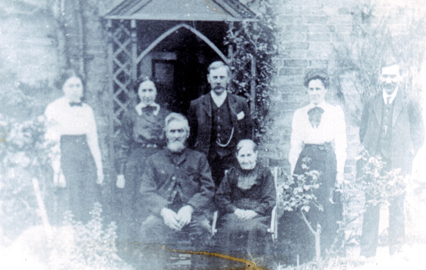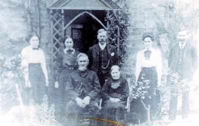 | 1) Feels like a very old picture, but of whom? - Right end is William Bossingham - at front his parents. | |